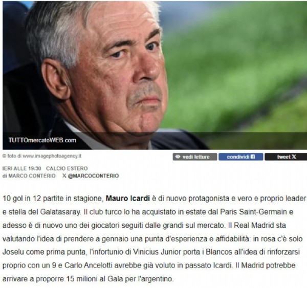 İtalyan hocanın, Vinicius Jr.'ın sakatlığı sonrası daha önce de kadrosunda görmek istediği Galatasaray'ın yıldız oyuncusu Mauro Icardi'yi ocak ayında transfer etmek istediği belirtildi.